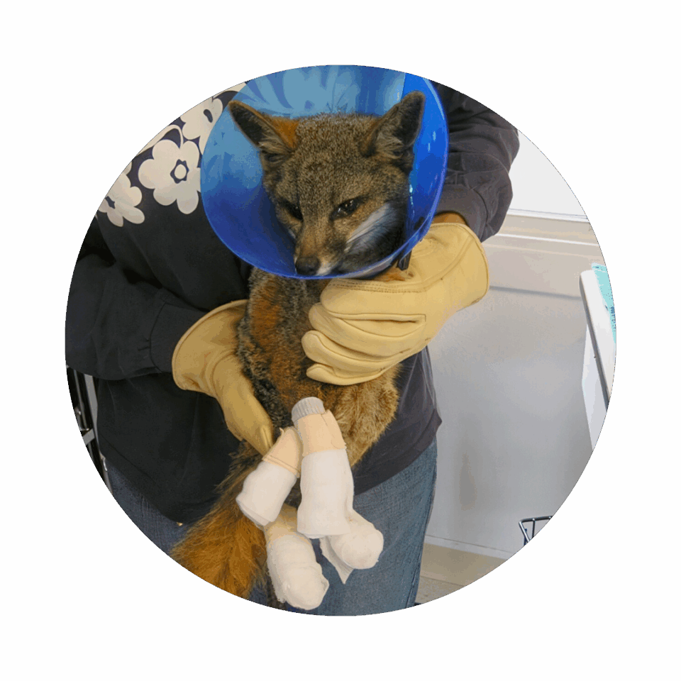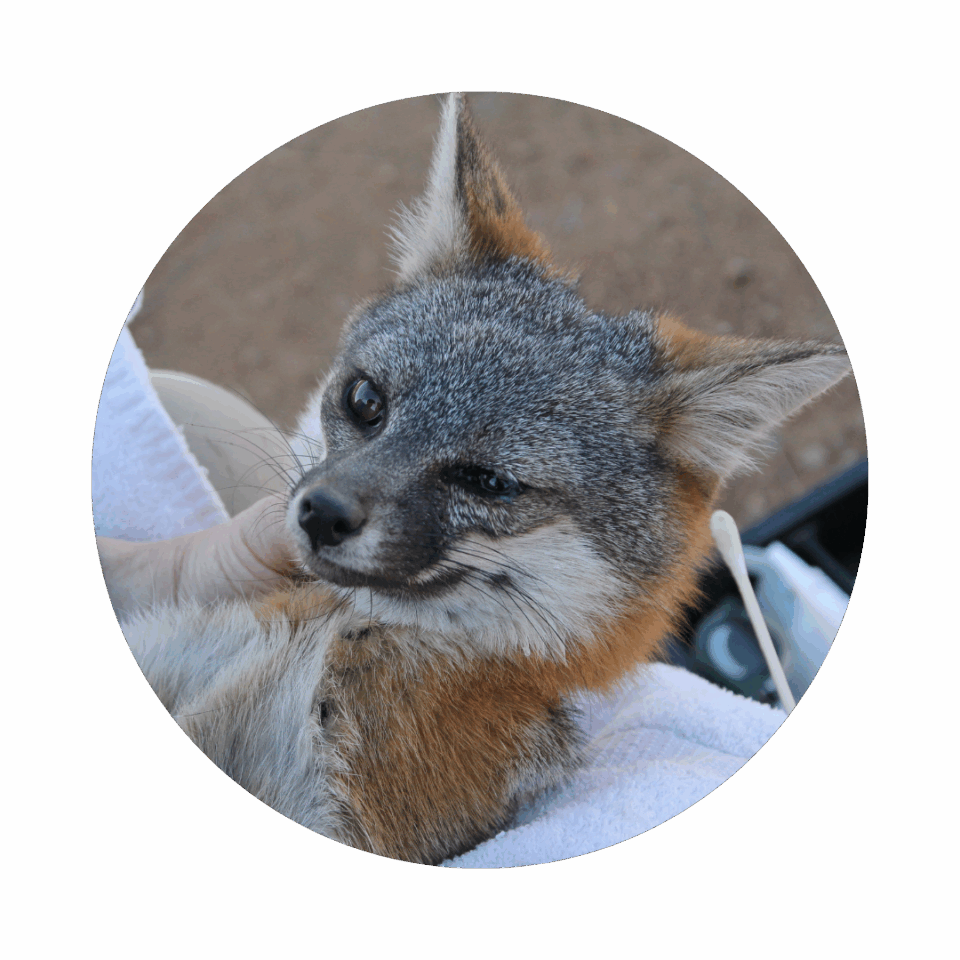 2007 – Following the Island Fire, Conservancy staff treat multiple Catalina Island foxes for burns to their paws, skin and ears.