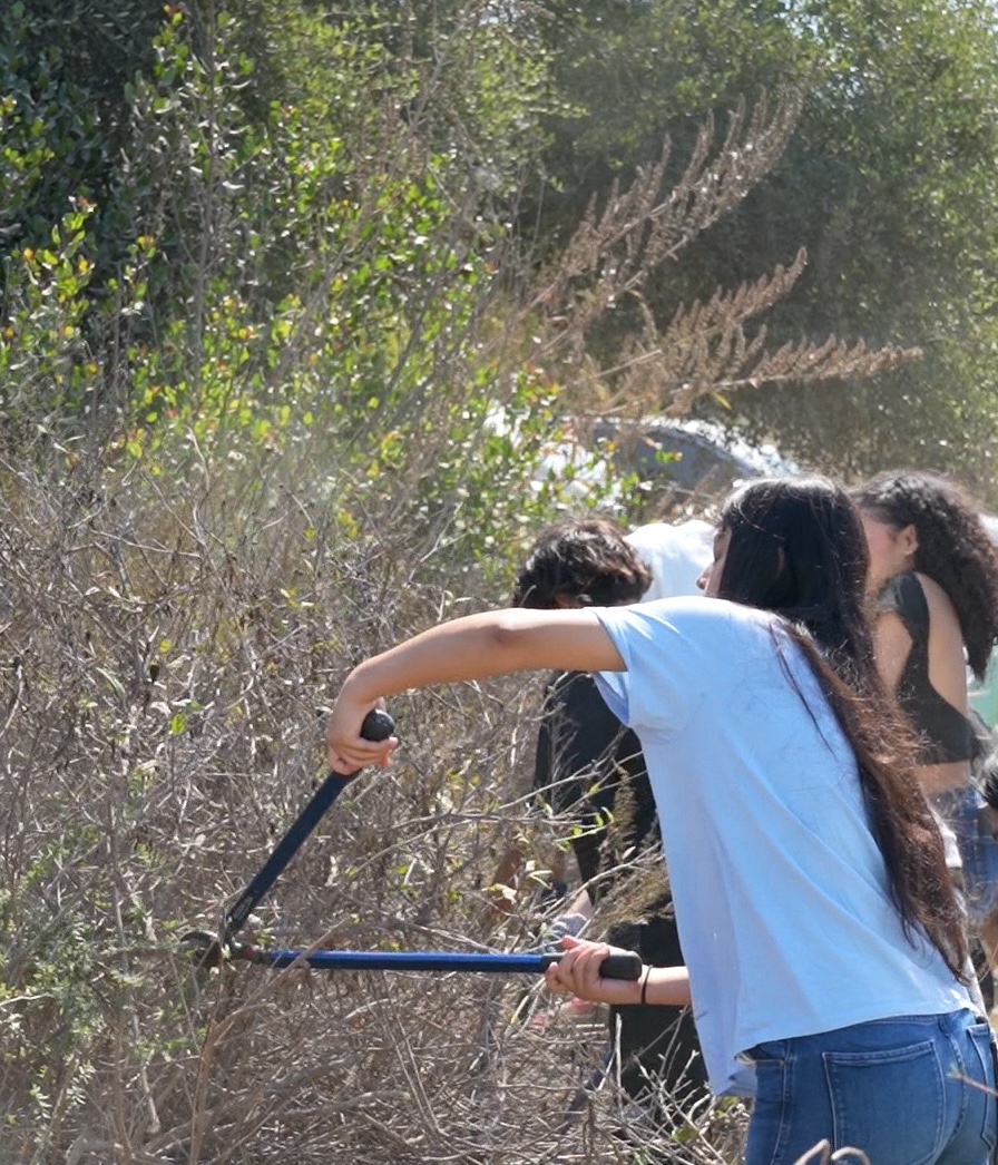 Campos guided the children in pruning overgrowth and clearing brush.